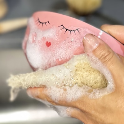Éponge en luffa naturelle ManaMani utilisée pour la vaisselle en cuisine zéro déchet