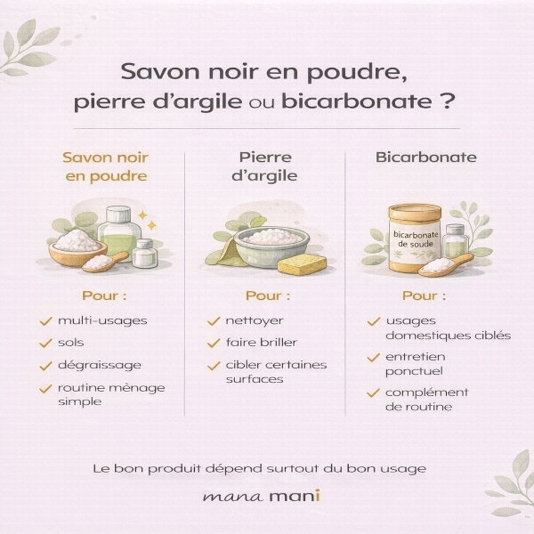Savon noir en poudre, pierre d’argile, bicarbonate : lequel choisir ?